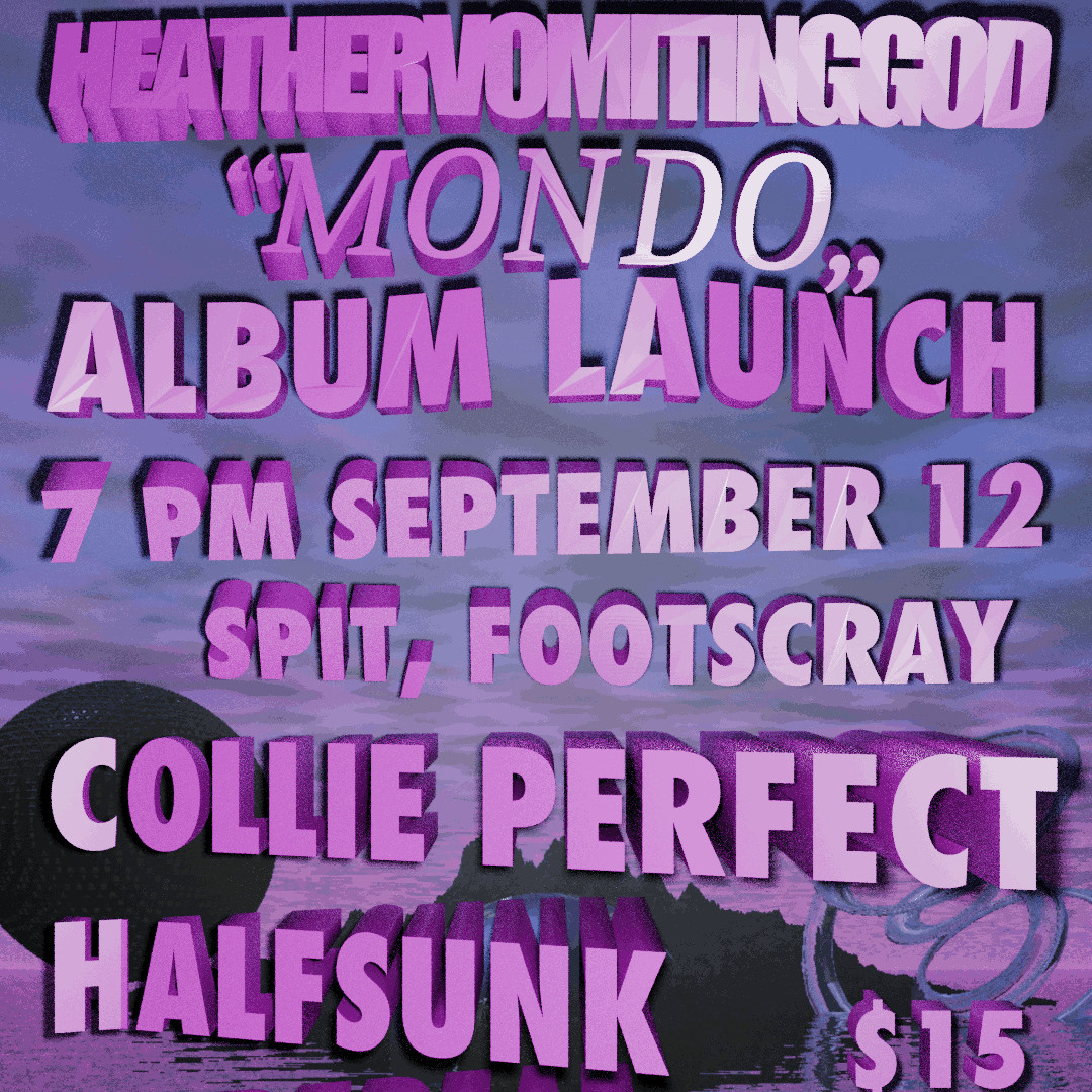 Launch event for melbourne tracker artist HeatherVomitingGod's new Album 'Mondo'! $15 Entry.