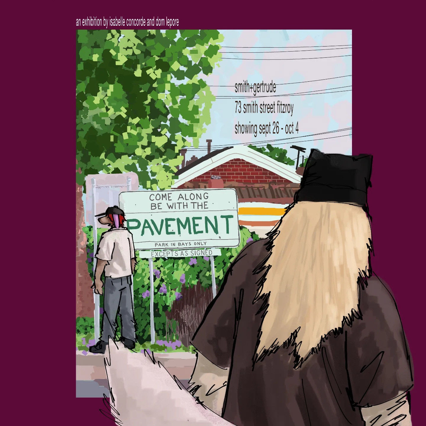 Opening night for Isabelle Concorde & Dom Lepore’s exhibition, Come Along Be With The Pavement! Free entry, beautiful art, come through!